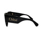 Montatura squadrata stile vintage in robusto acetato nero lucido. Il marchio del Brand è ben visibile su una delle due aste. Lenti infrangibili tinta unita.