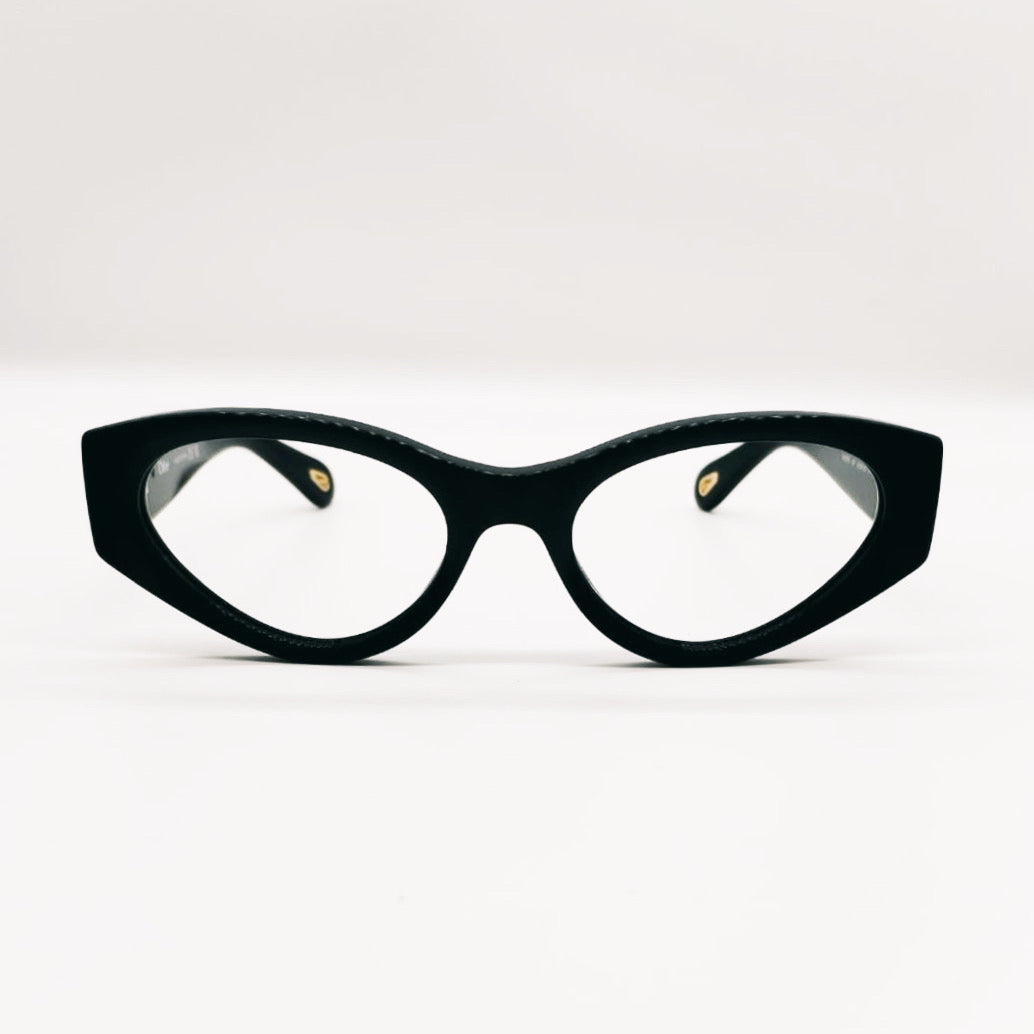 Montatura in acetato luminosissimo, dalle linee femminili ed eleganti. Spicca l’’inserto metallico delle aste.