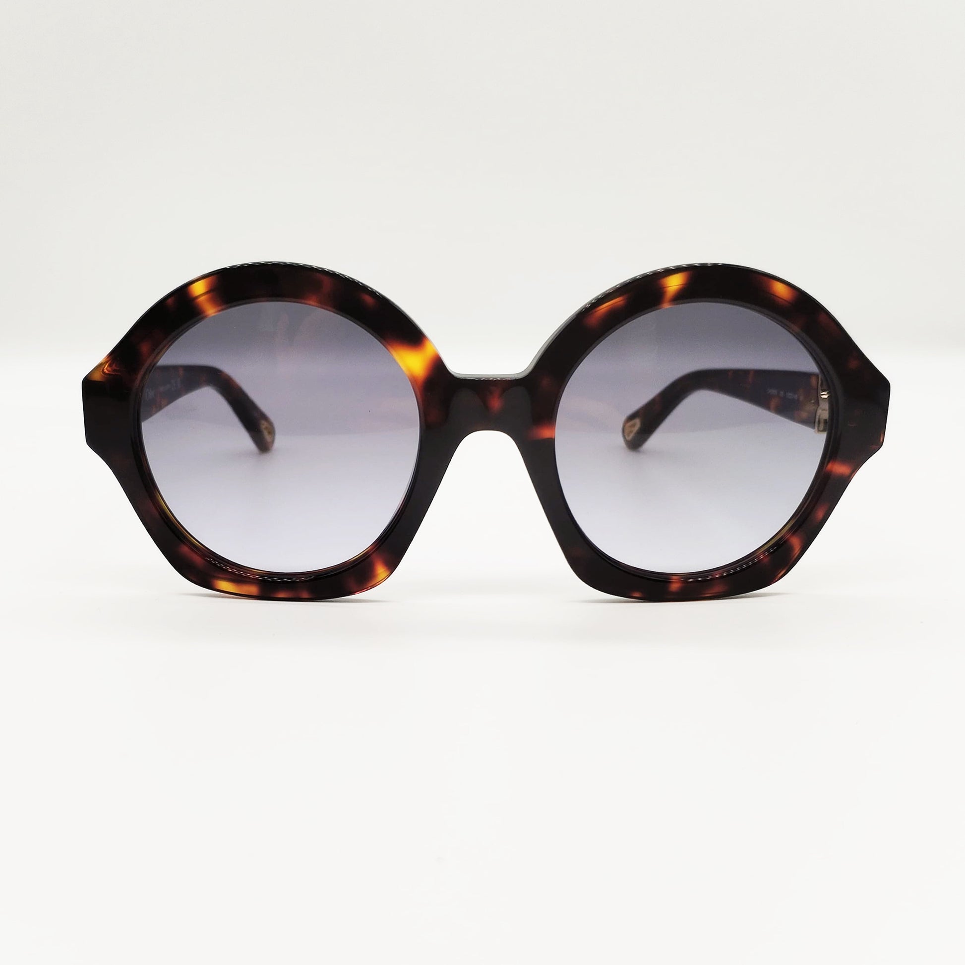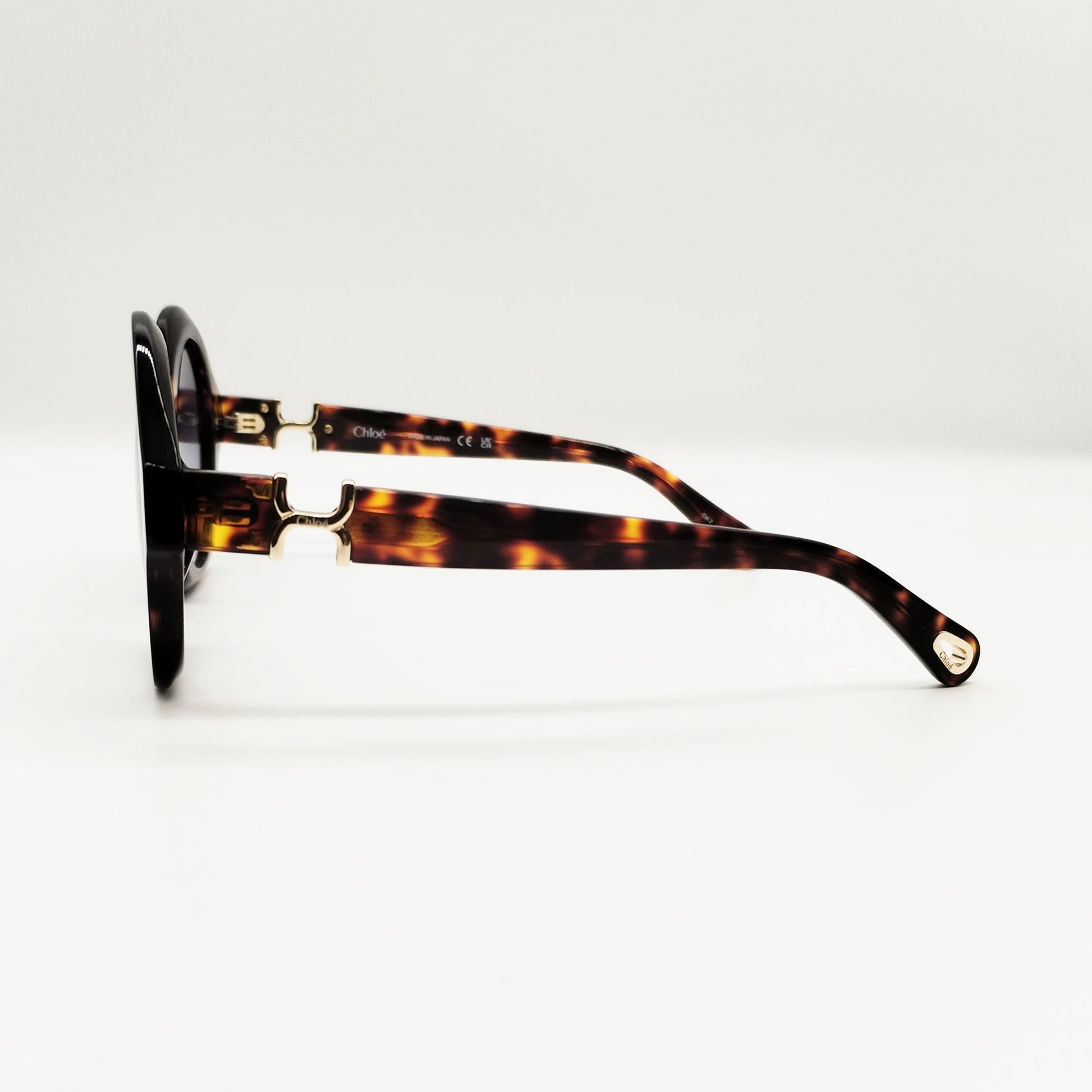 Modello femminile ed elegante in avana lucido con logo oro sulle aste. Lenti infrangibili.
