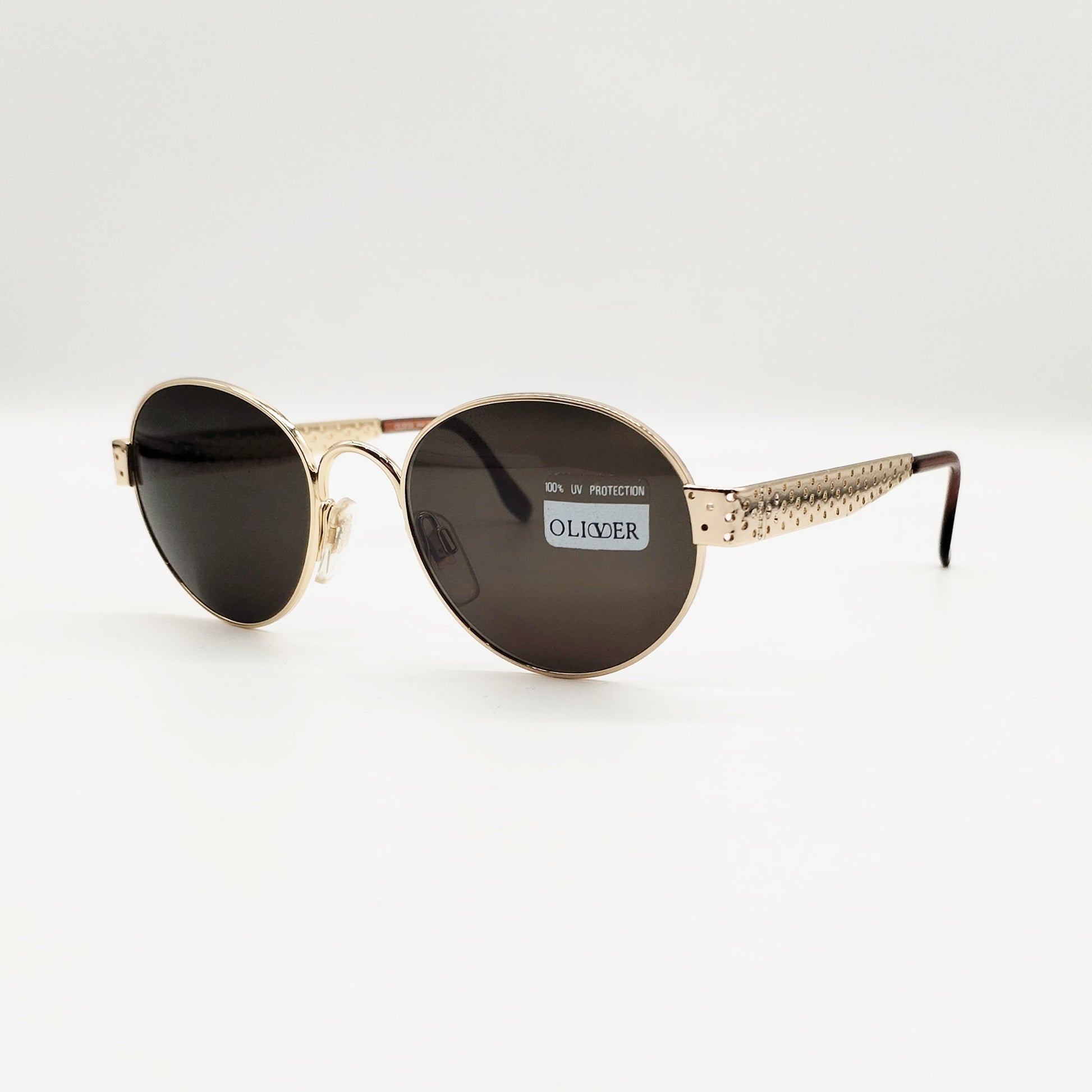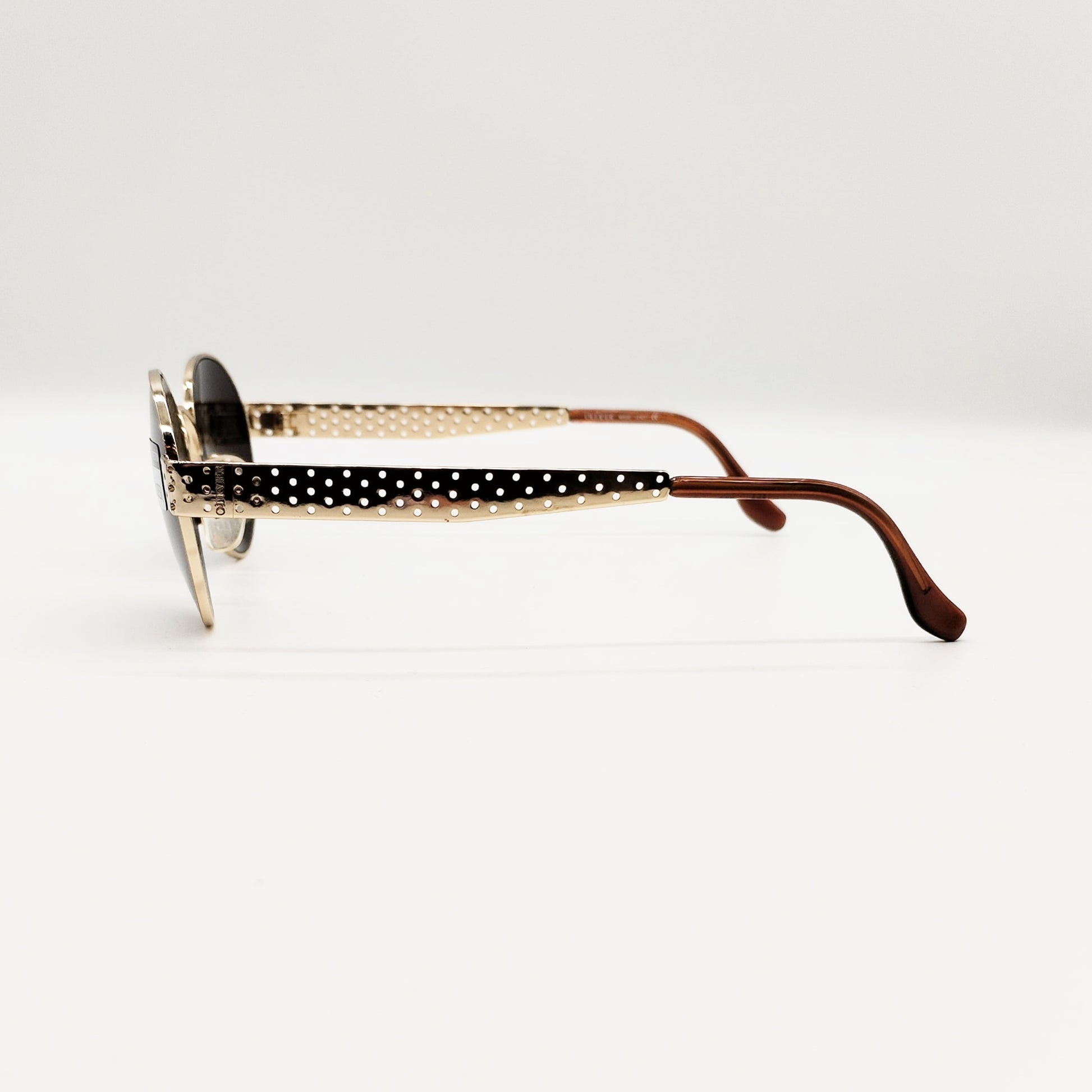 Modello in metallo oro di forma tondeggiante con splendida lavorazione “bucherellata” delle aste. Originale vintage.