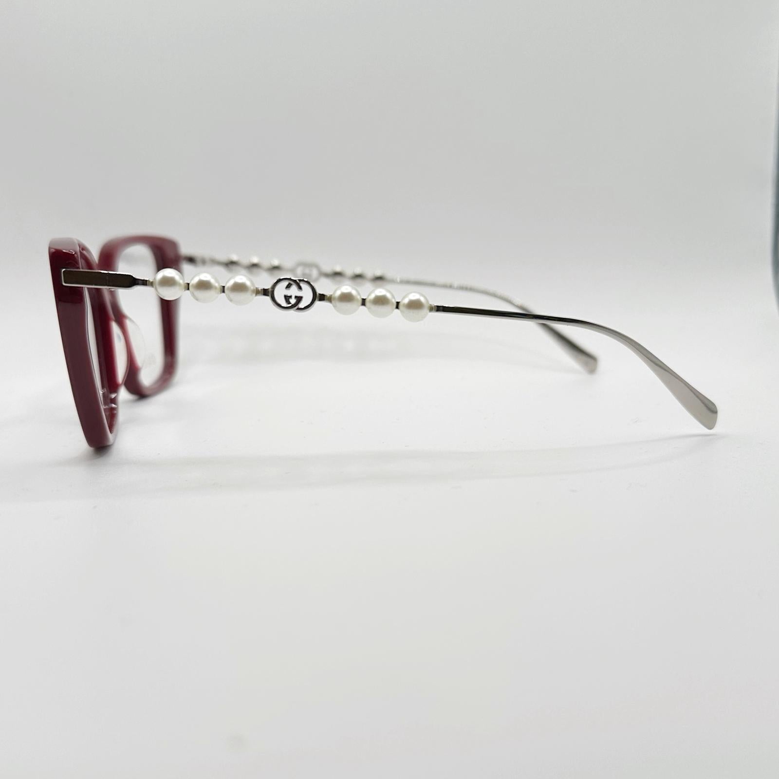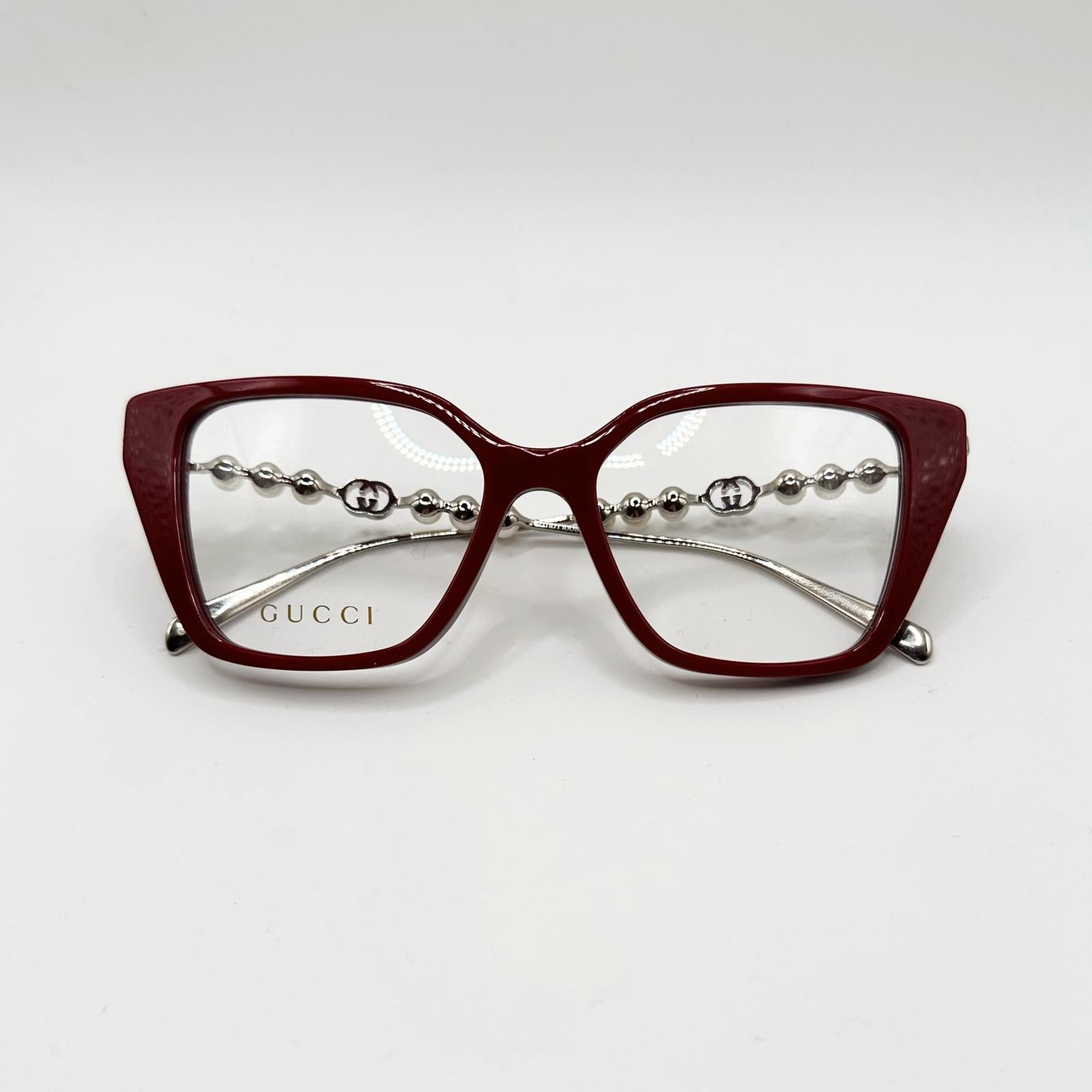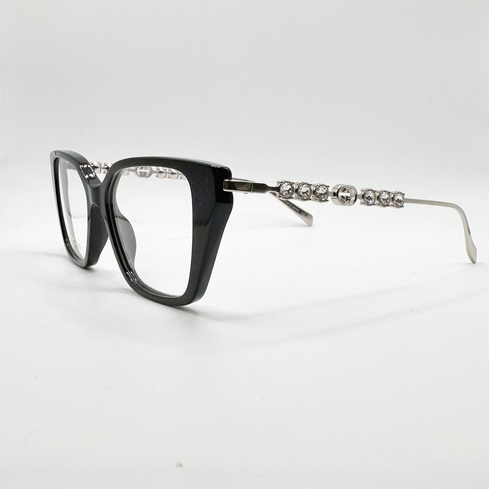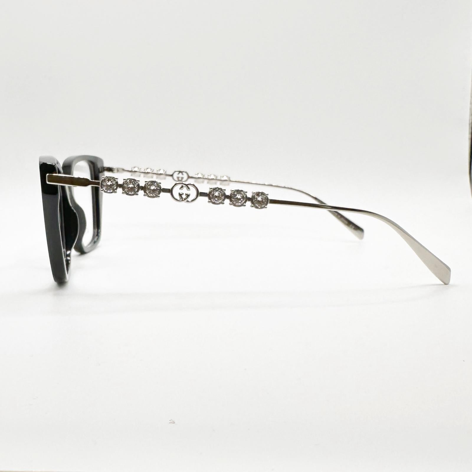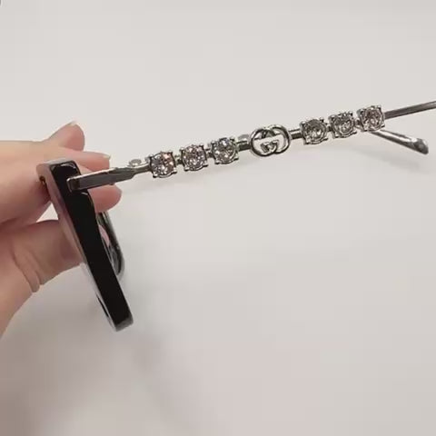 Montatura chic e femminile con frontale lucido a farfalla. Aste in metallo argento impreziosite da dettagli con perle o pietre.