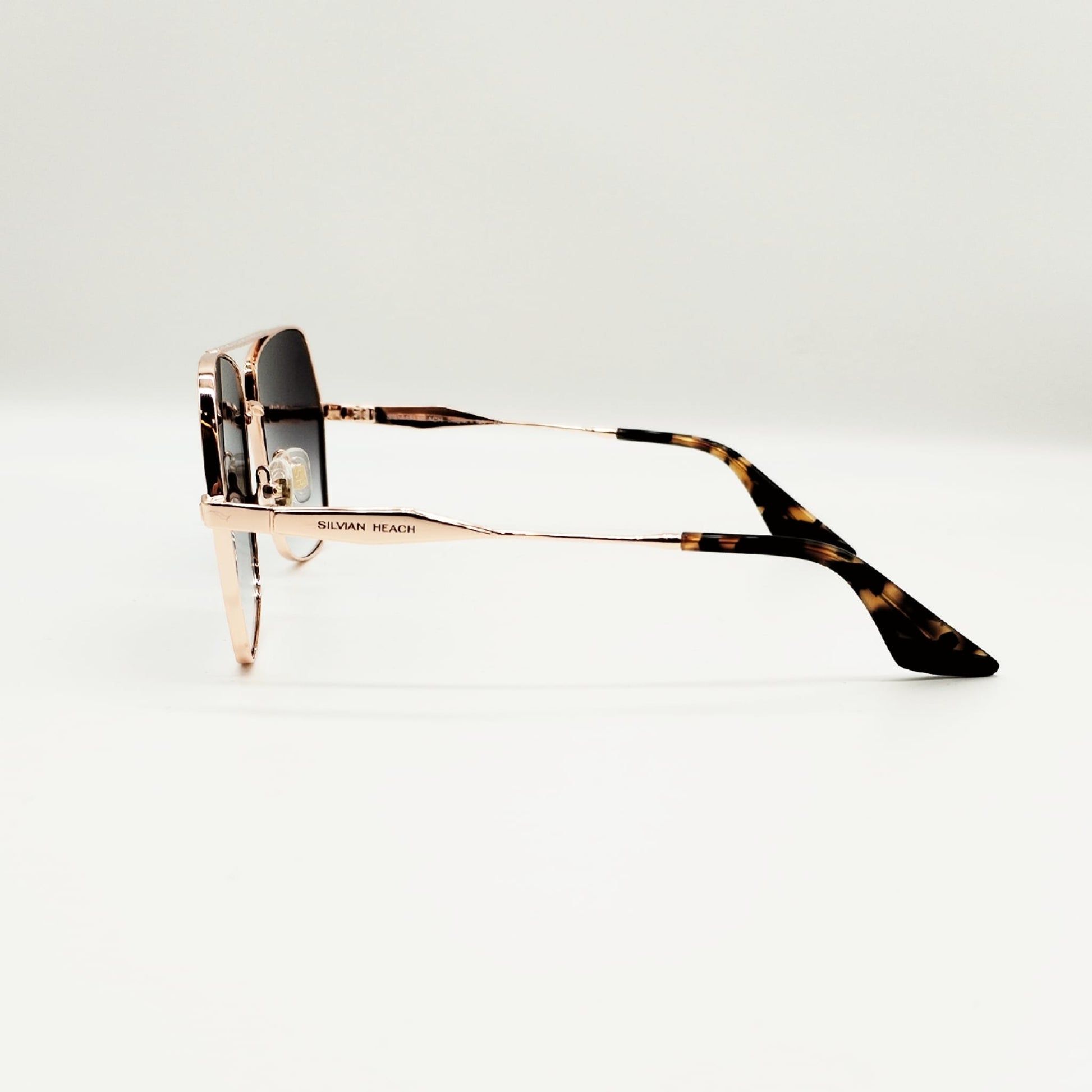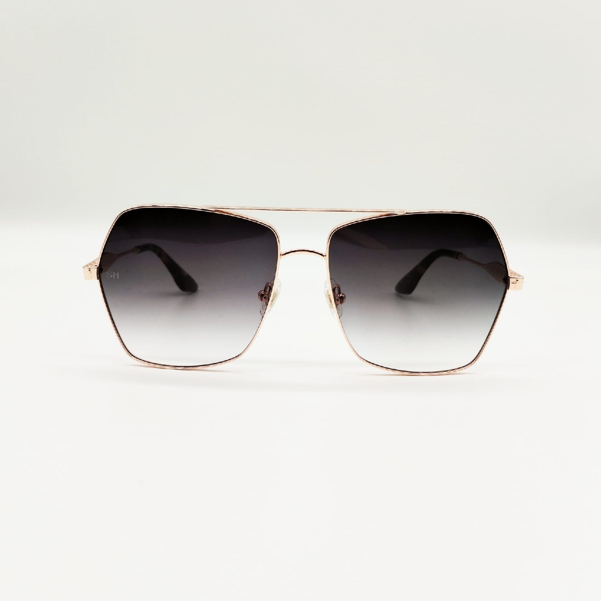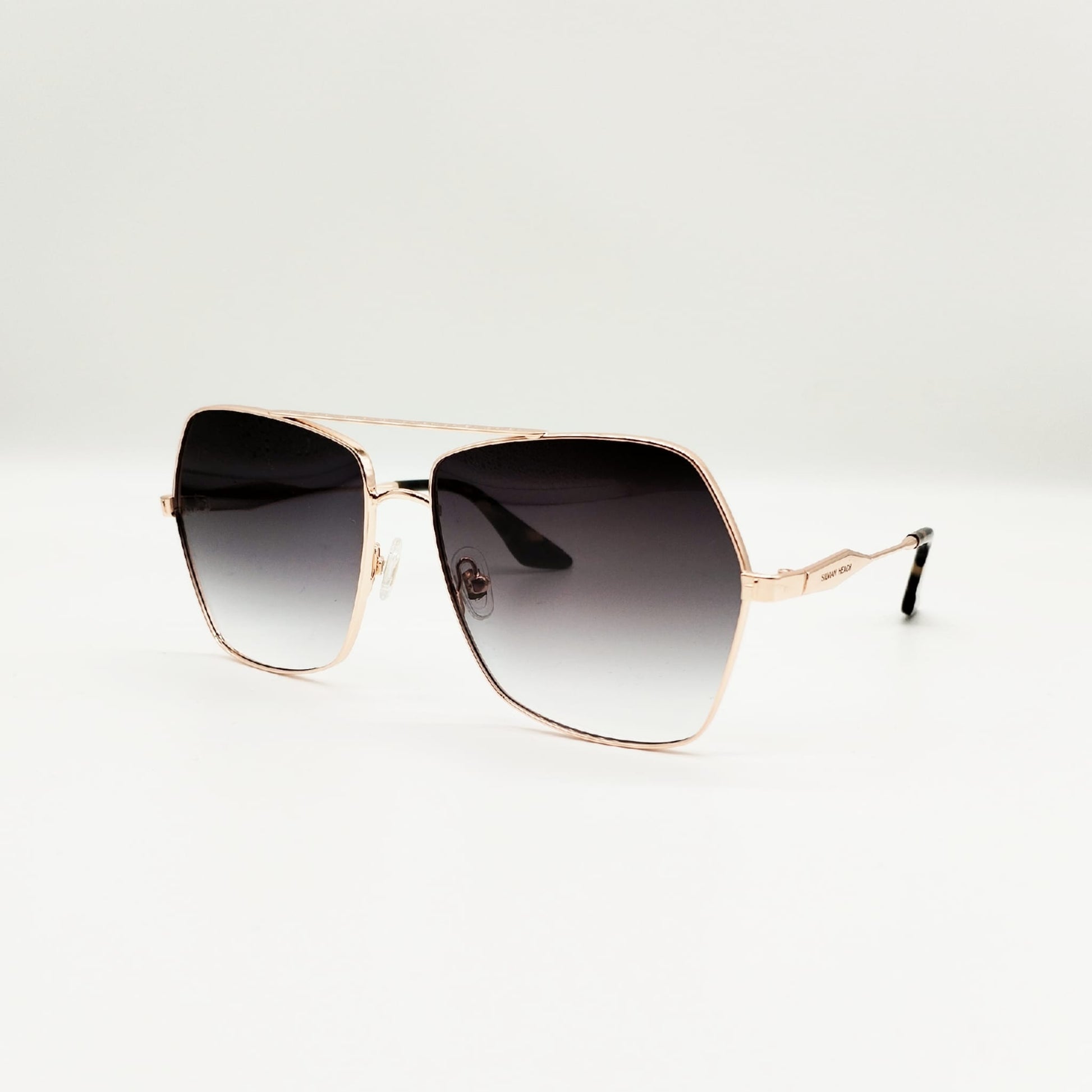 Modello femminile oversize in metallo con doppio ponte. Lenti infrangibili sfumate.