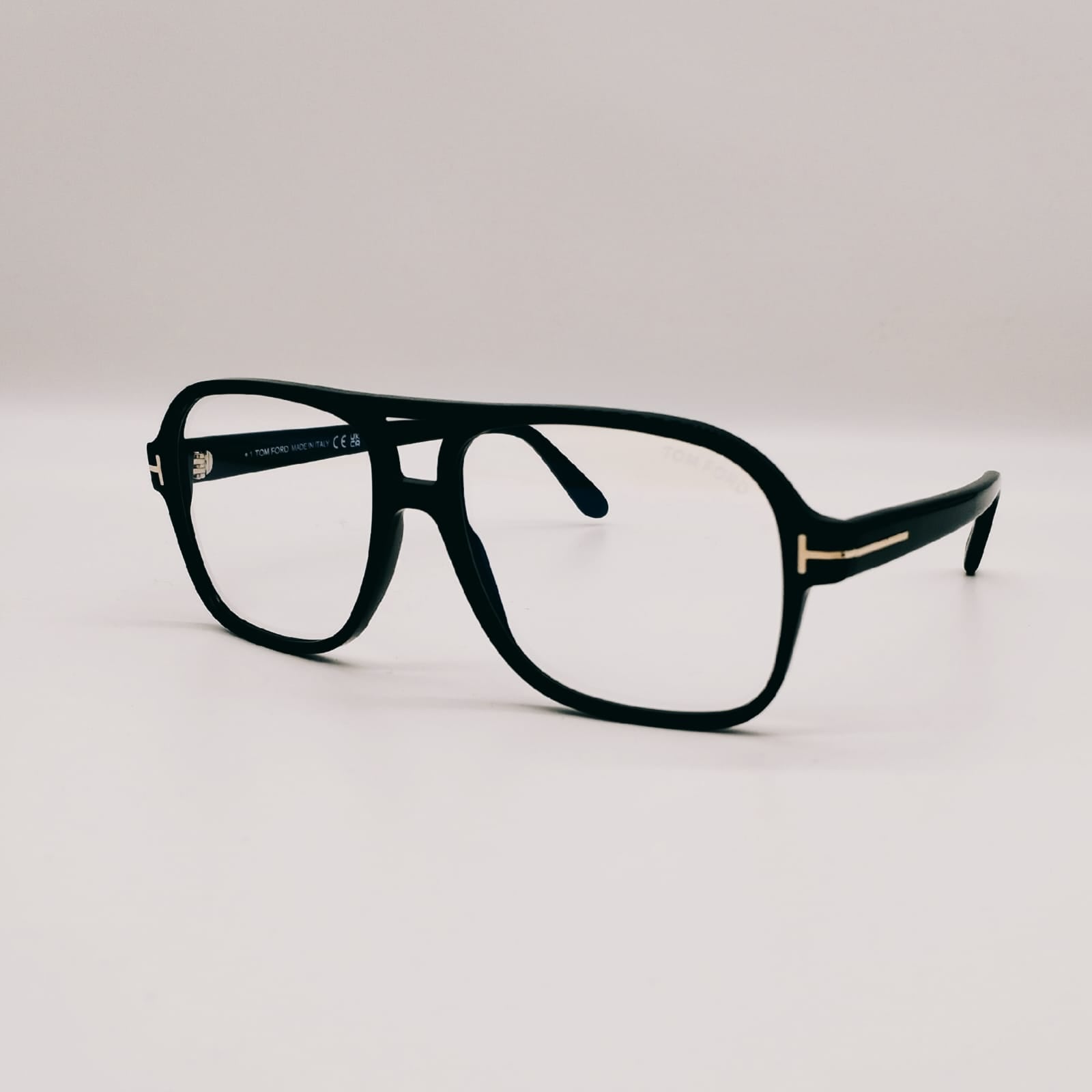 Modello a mezza goccia over con dettaglio di doppio ponte. Lastra lucida color nero.