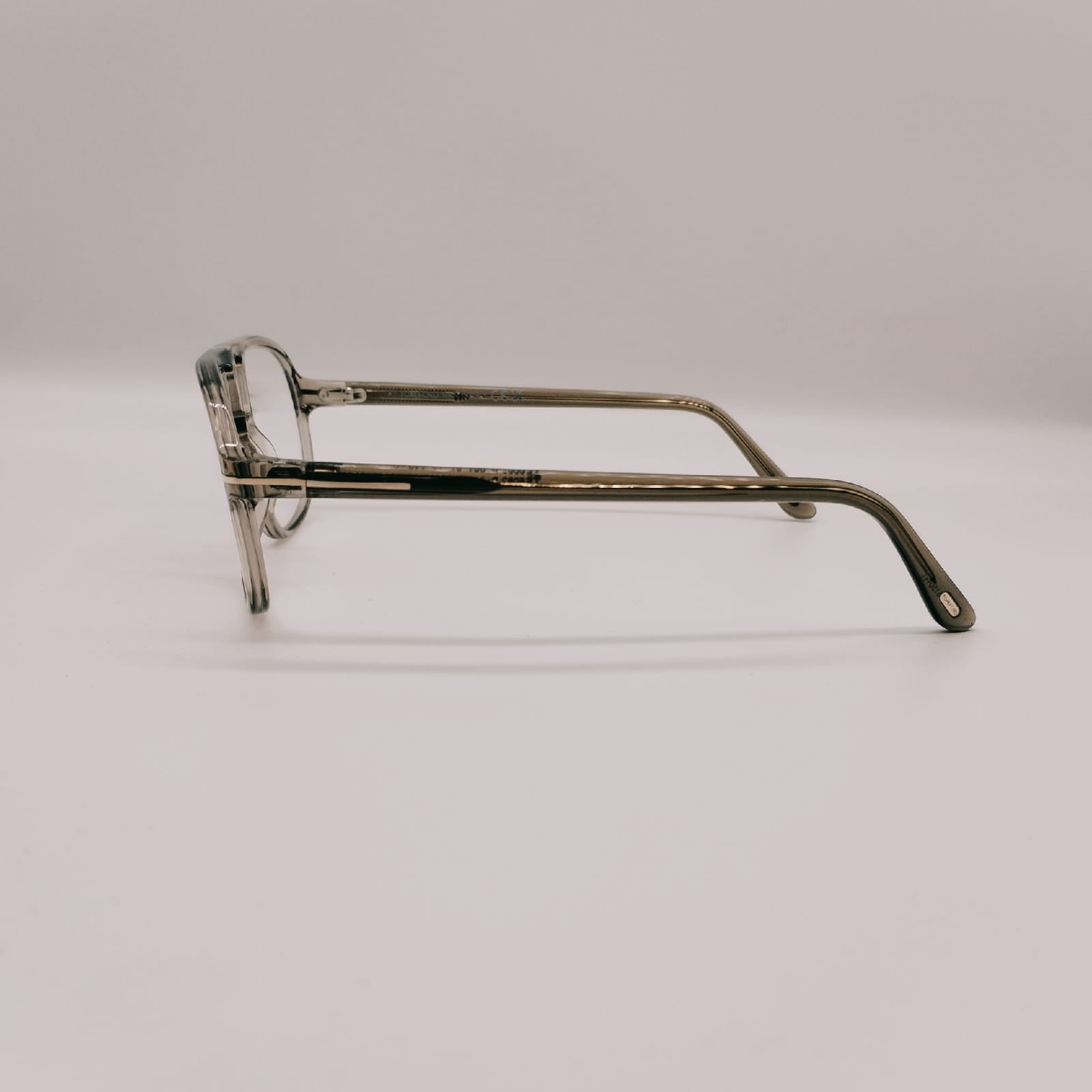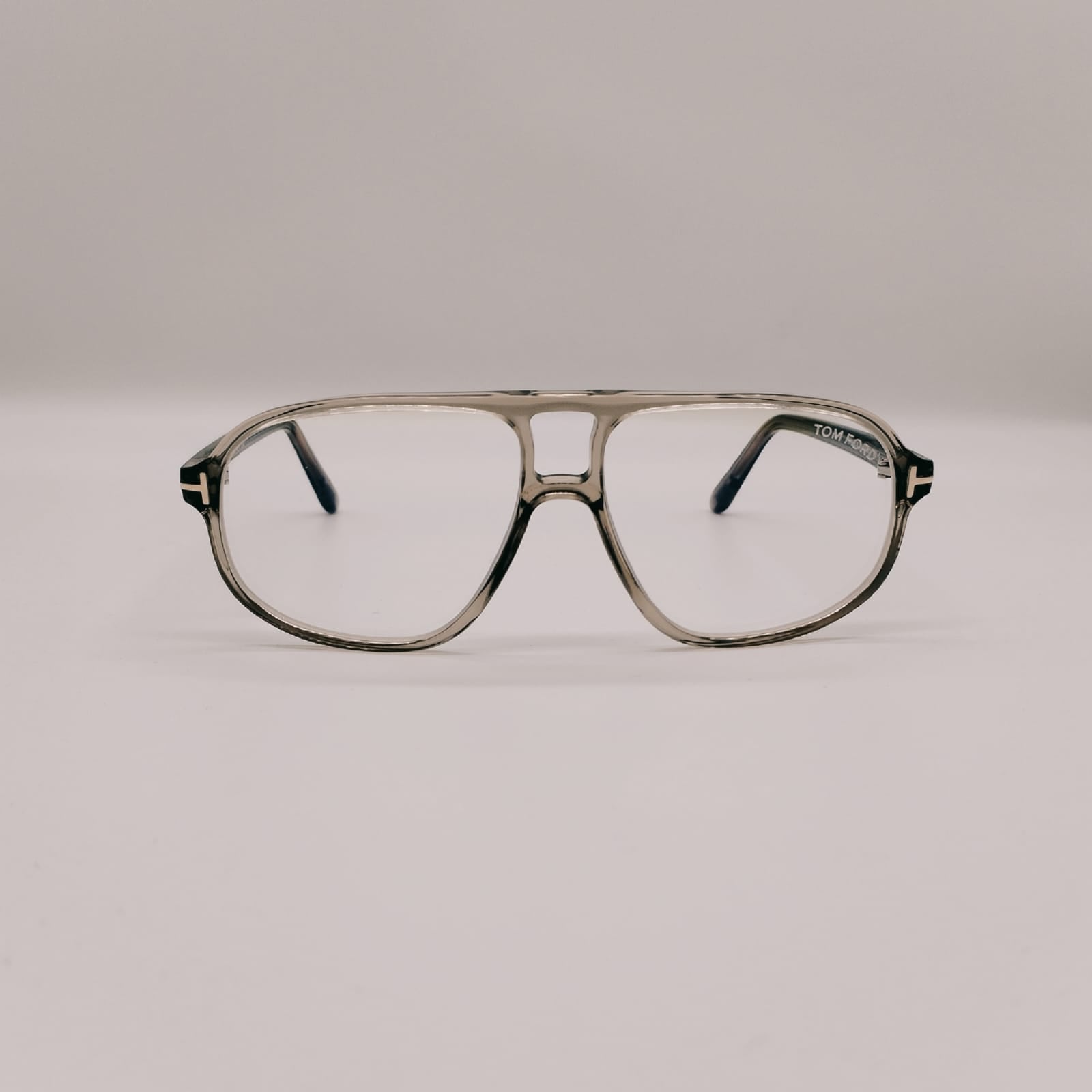 Modello a mezza goccia con dettaglio di doppio ponte. Lastra lucida color grigio trasparente.