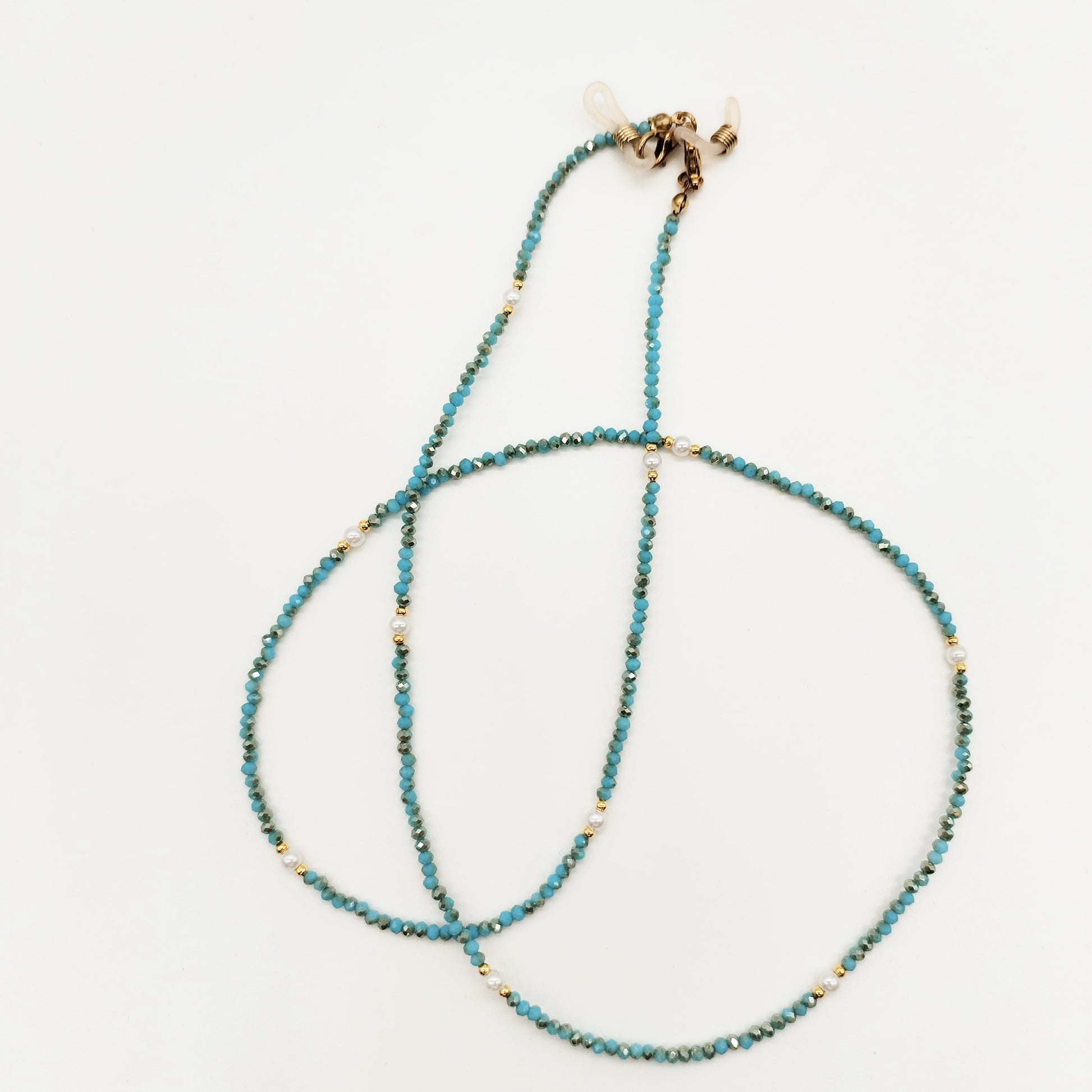 Filo di piccoli cristalli luminosissimi con piccole perline bianche e dettagli oro. Grazie ai piccoli moschettoni è possibile togliere i gommini e utilizzarla anche come collana o bracciale multi-filo.