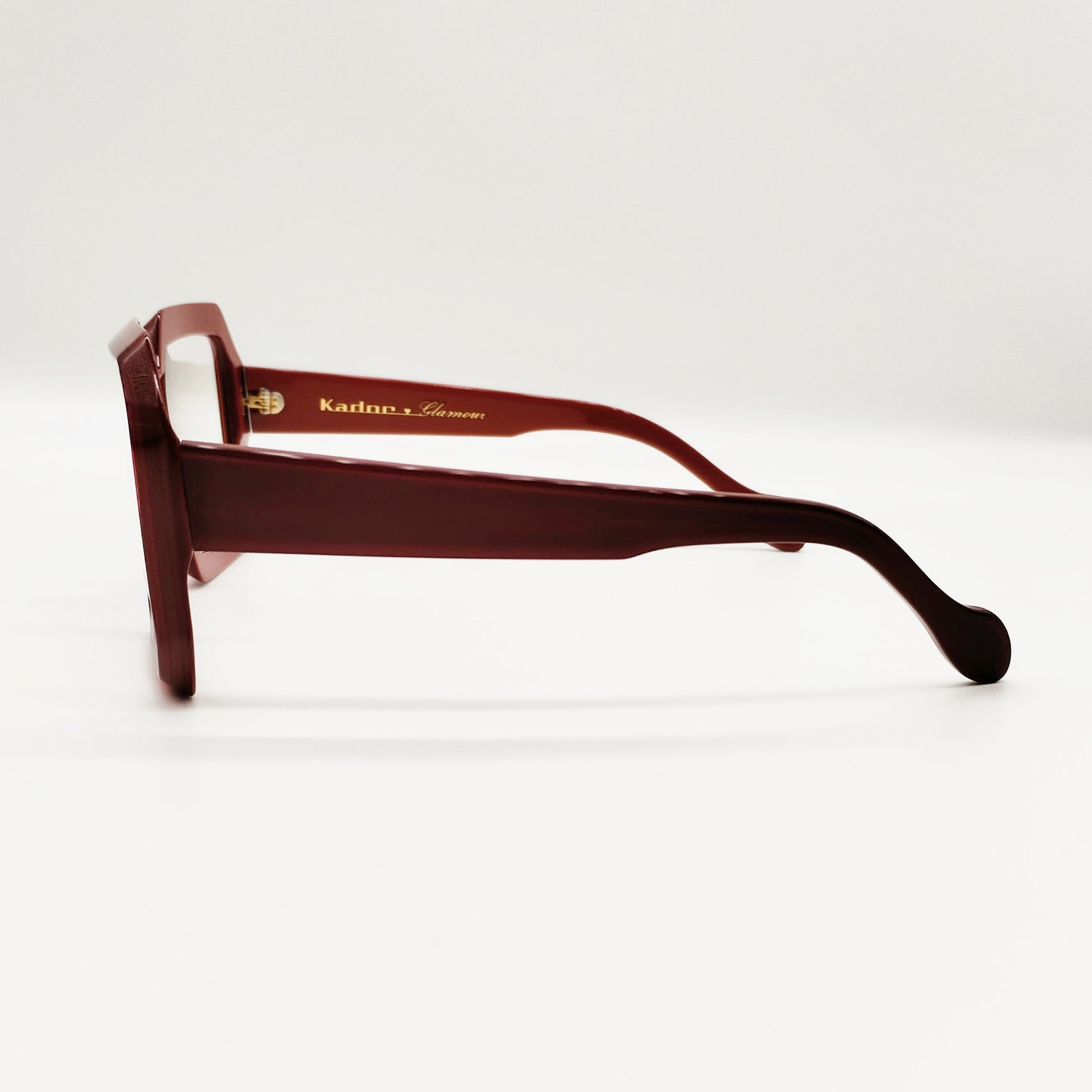 Montatura femminile molto ampia, in stupenda lastra rossa levigata e lavorata a regola d’arte. 100% Made in Italy