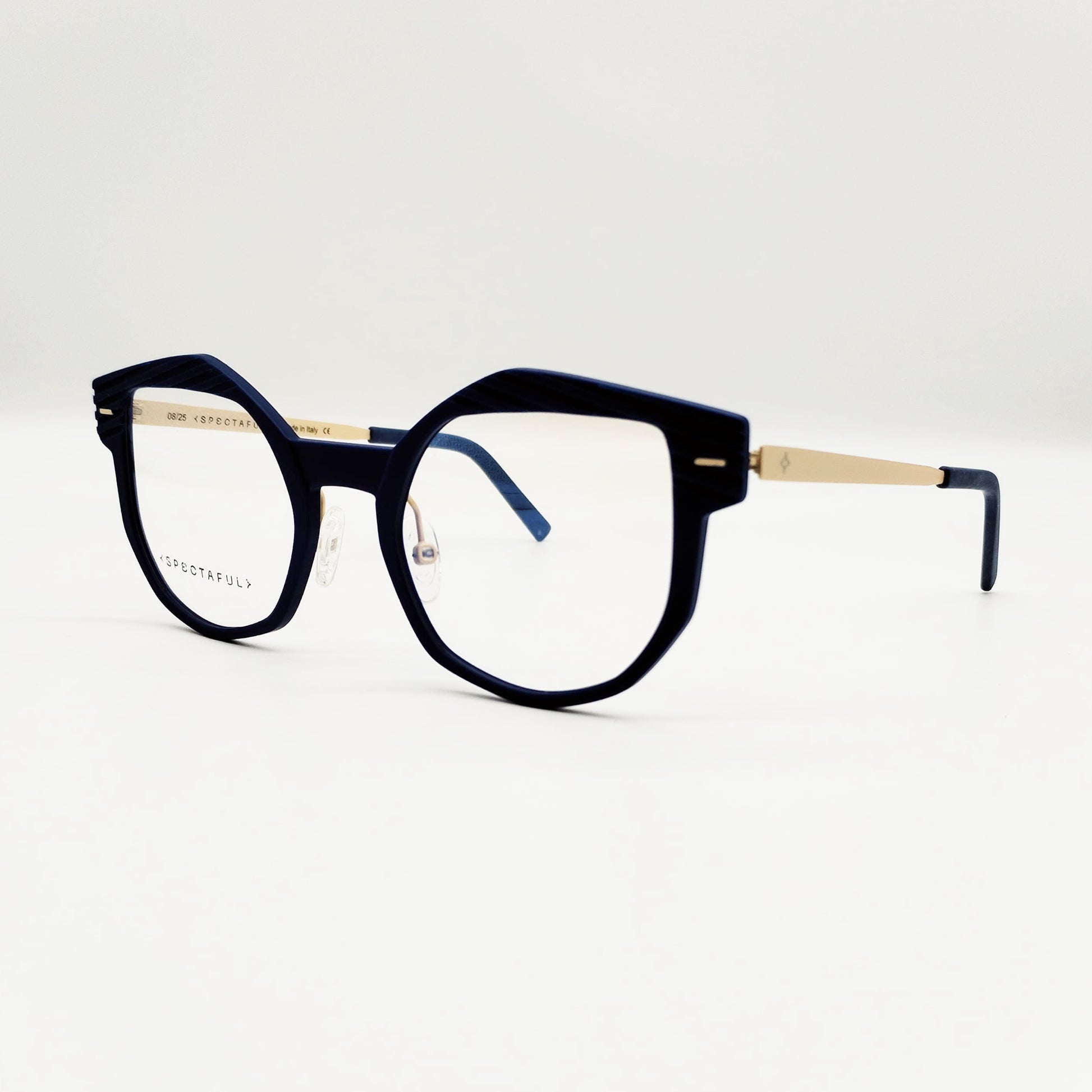 Modello femminile leggermente tondeggiante. Gli occhiali Spectaful accostano l’alluminio ad un tecnopolimero resistente usato per la prima volta in campo ottico, per prestazioni eccezionali: incredibile resistenza agli urti, agli sbalzi termici e all’ossidazione ed assoluta leggerezza (peso 9 grammi).