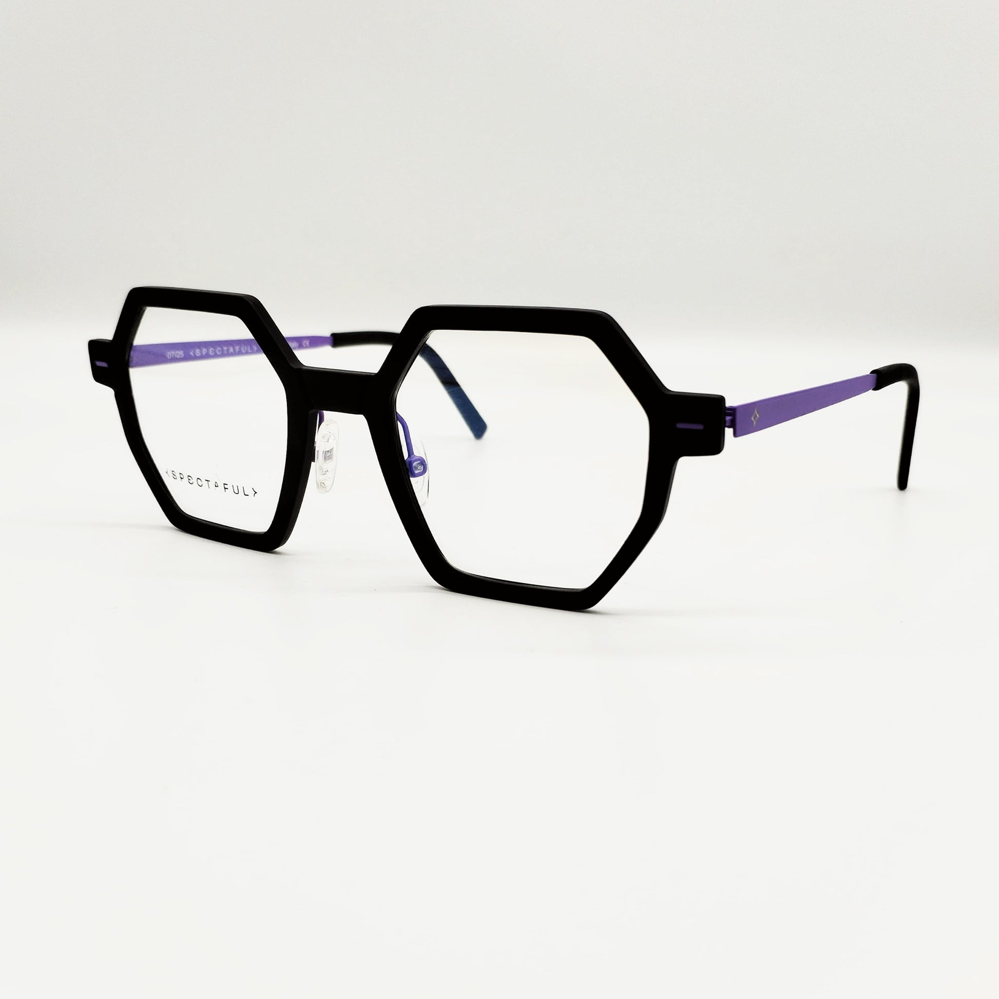 Modello sfaccettato. Gli occhiali Spectaful accostano l’alluminio ad un tecnopolimero resistente usato per la prima volta in campo ottico, per prestazioni eccezionali: incredibile resistenza agli urti, agli sbalzi termici e all’ossidazione ed assoluta leggerezza (peso 9 grammi).