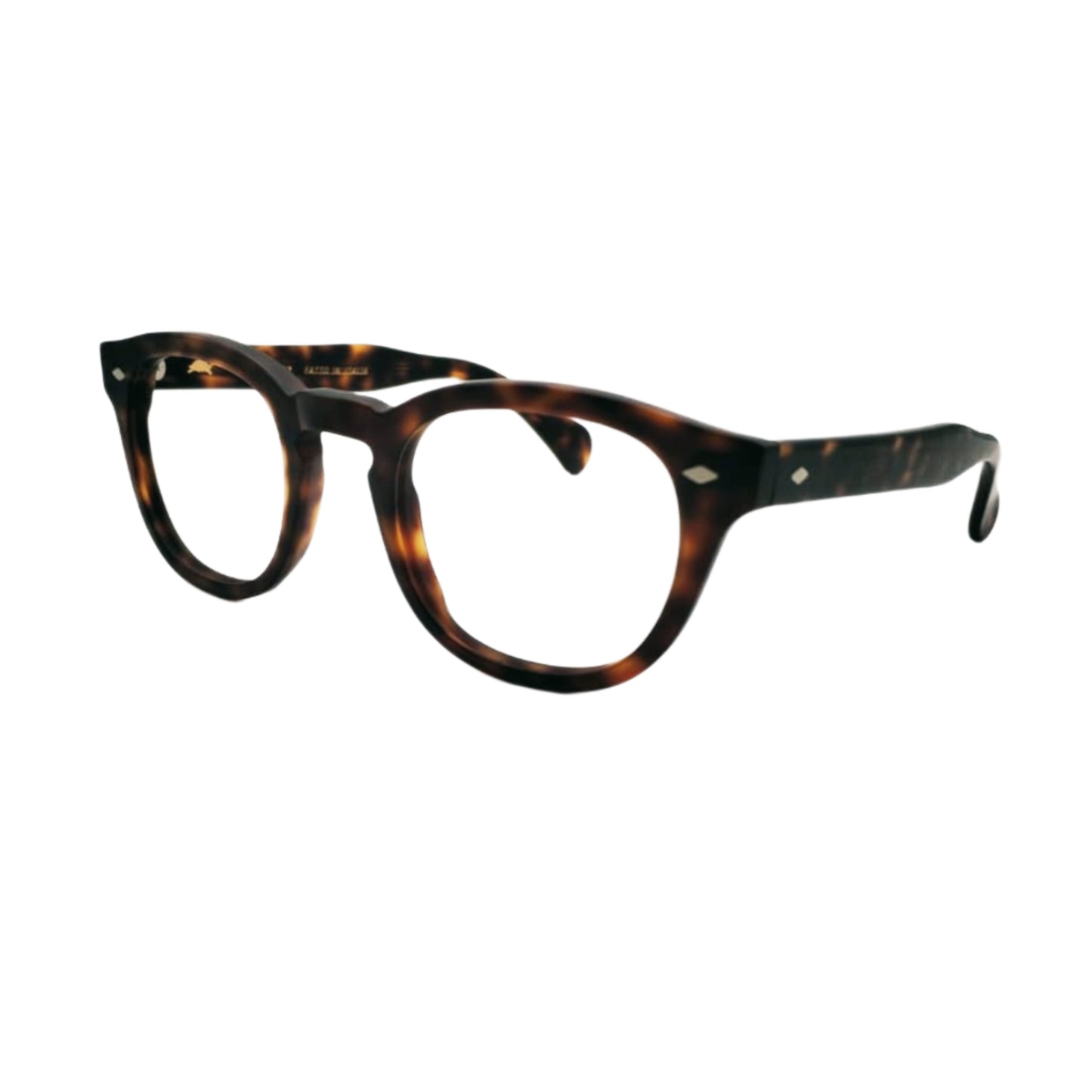 Montatura in acetato unisex dallo stile vintage, di forma squadrata e dai profili morbidi. La lastra lucidissima, lavorata con maestria, dona luminosità e i tipici rivetti color argento su frontale ed aste rifiniscono perfettamente. Occhiale 100% Made in Italy.